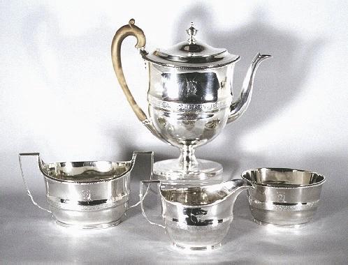 Servizio da tè in stile neoclassico, assemblato con 4 pezzi diversi,