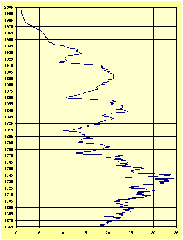 attualizzato del dollaro dal 1665 al 2004